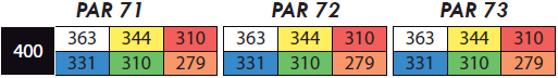 Leggero dog-leg a destra con fairway difeso da un bunker. Il green è particolarmente grande e mosso, richiede attenzione al posizionamento della bandiera prima di scegliere il bastone da usare.